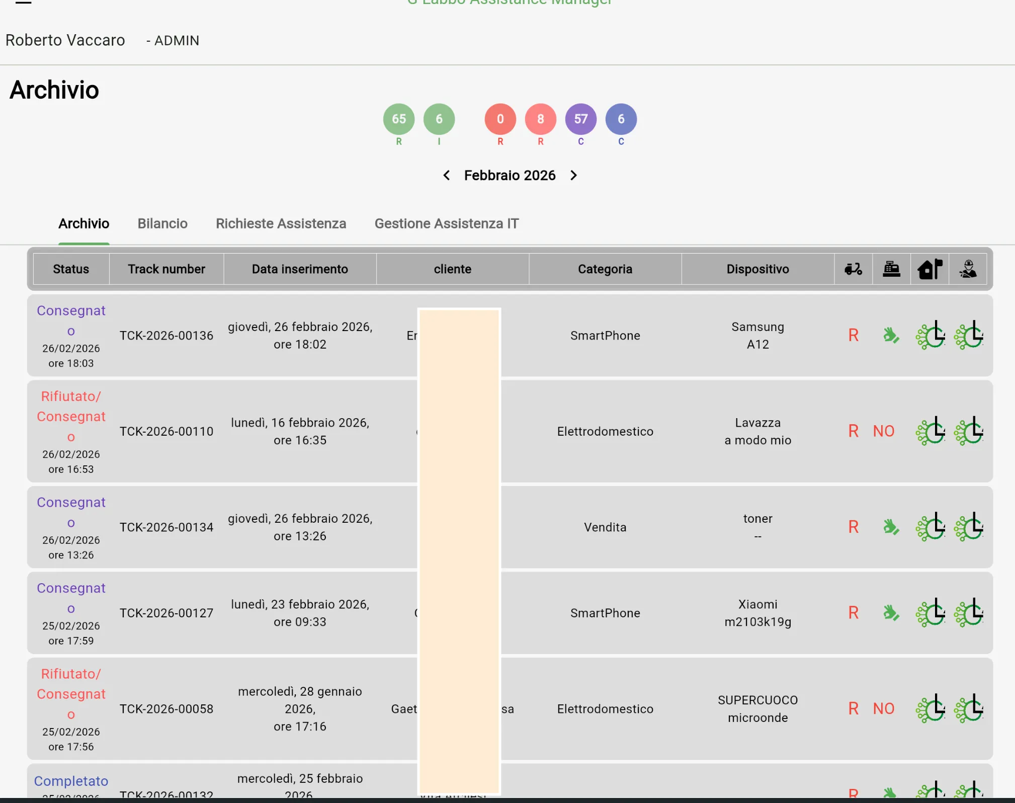- Gestione ticket: riparazione e intervento