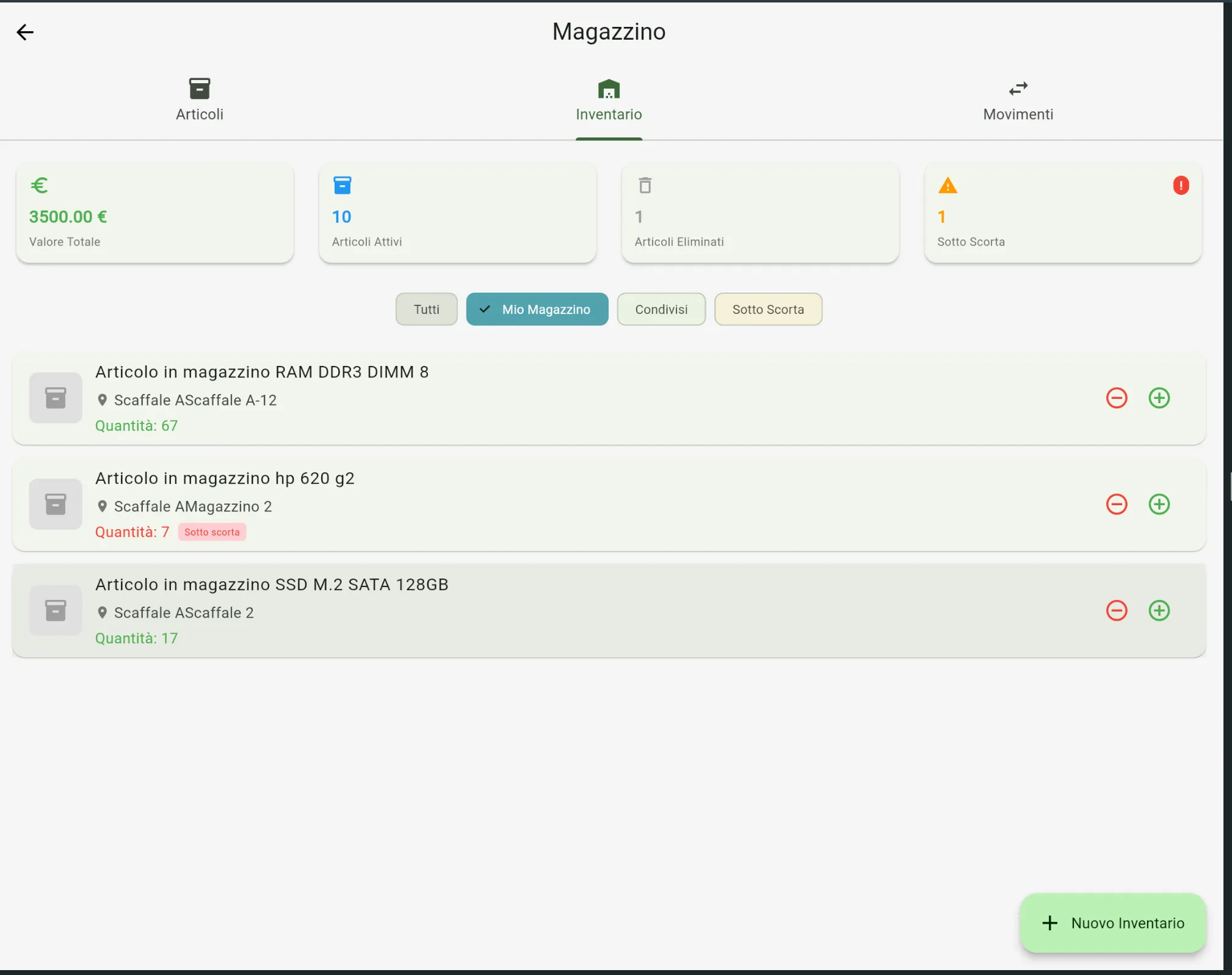 Magazzino e Inventario